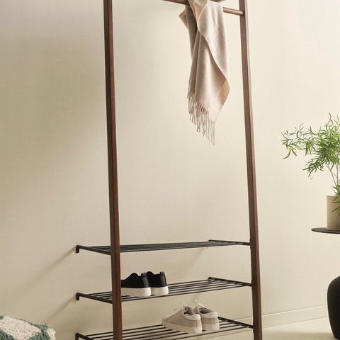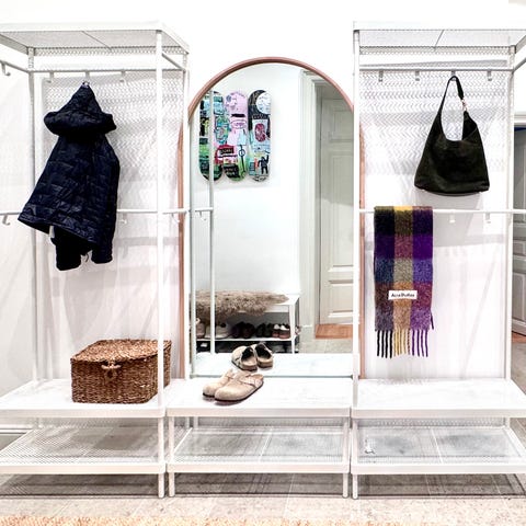 Säljer en tidlös design hylla för kläder och kavaj. i hyllan är i metall med marmorskiva i botten, svart med carrara vit-marmor. Hyllan är i Nyskick!