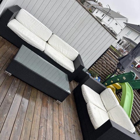 Säljer nu vårt kära lounge-set inköpt för ca 5 år sedan. Stolarna är i modellen ”Gio”, från det italienska supermärket B&B Italia, medan bordet är från tyska märket Dedon, också mycket exklusivt.