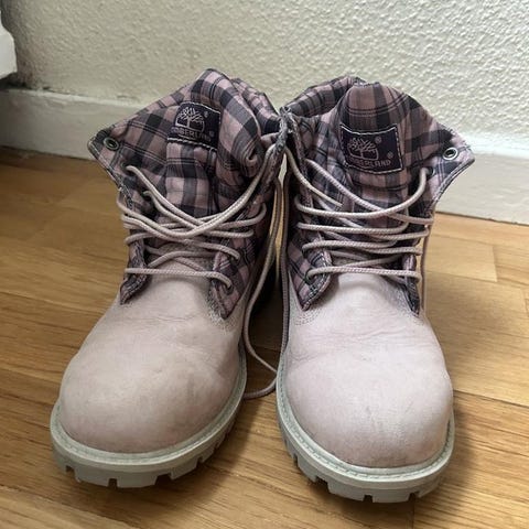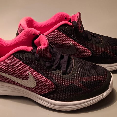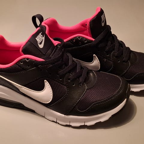 Reebok sneakers i storlek 35, rosa färg. Skorna har hög modell med vadderad ankel och dubbla kardborreband samt snörning framtill. Yttermaterialet är syntetiskt med en gummisula som ger grepp.