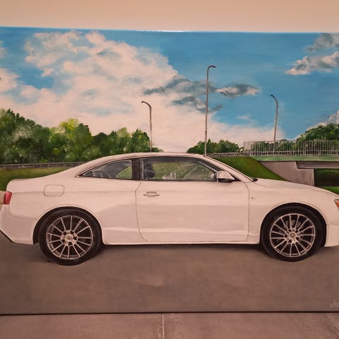 70-tals akryltavla – buffel & vagn, H. Polinsky, 122 × 52 cm