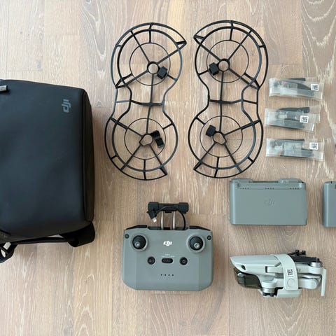 Det medföljer själva drönaren ett batteri en DJI kontroll, ett batteri manualer, extra propellrar men bara tre då jag behövde andvända en för att den vart lite skadad, skruvar till propellrarna och skruvmejsel till dem, lite manualer och klistermärken samt orginalboxen.