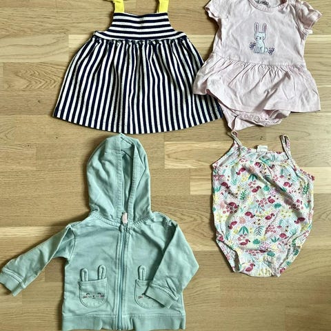 Topp storlek 140 i 100% bomull. Nedre delen av axelbanden där bak är elastiska. Jättefint skick, använt en gång. I princip som nytt. Båda från H&M.