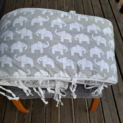 Grått spjälskydd från Rätt Start. Mycket bra skick. Den är fluffig och "tjockare" är många spälskydd.