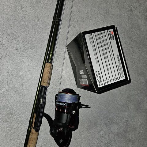 Med haspelrulle och på spolad lina 100 m / 0,30 mm och drag.
