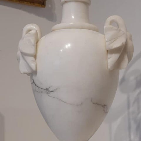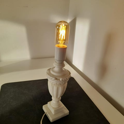 Riktigt exklusiv och tung lampa i äkta italiensk marmor/alabaster med handskuren klassisk urnform.