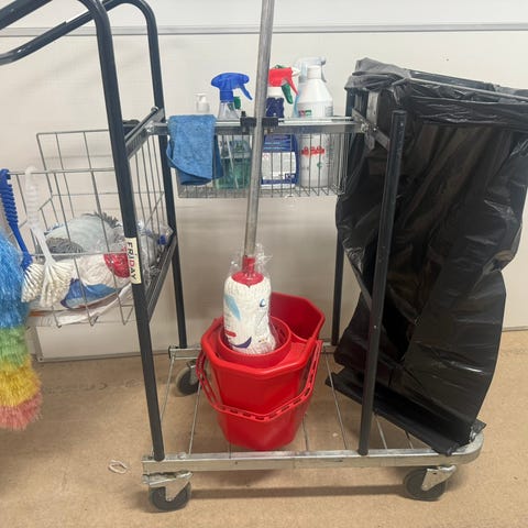 Medicinsk provtagningsvagn med förvaringslådor och arbetsyta i trä