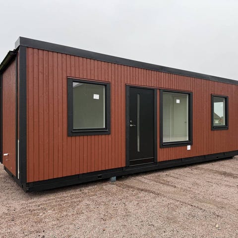 Fin byggnad, bestående av 20st volymelement för lätt flytt. En rejäl och välisolerad konstruktion för permanent eller temporärt bruk