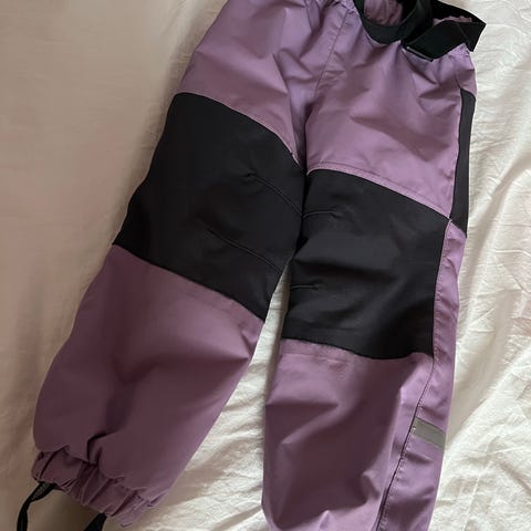 Lindex barnbyxa i svart färg, storlek 86, unisex. Byxan är tillverkad för barn och har justerbara hängslen samt förstärkningar vid knäna. Materialet är anpassat för att ge skydd och komfort vid lek och utomhusaktiviteter. Värmande fleecefoder. Fothällor kan behöver bytas alternativ sys fast. ”Krullade” men hela (lös på ena sidan), se sista bilden.