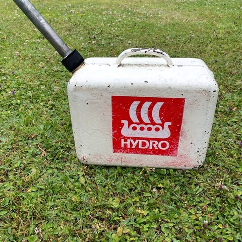 Gamla bensindunkar, 3 st i plåt och en i plast. 150,-/st