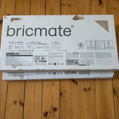 Säljer 3 paket Bricmate Norrvange J66 Light Grey 60x60 plattor som blivit över vid renovering.