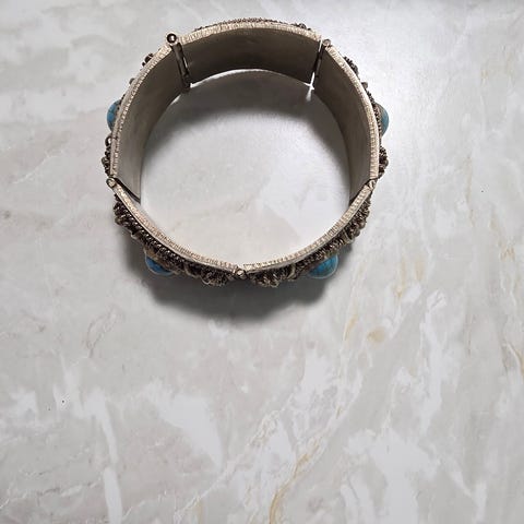 Silverarmband med en graverad platta och öppet justerbart band. Armbandet väger cirka 18,10 gram och är tillverkat i silver. Designen är enkel med en rektangulär platta som har detaljerad gravyr. Armbandet är stämplat 925 och ORA.