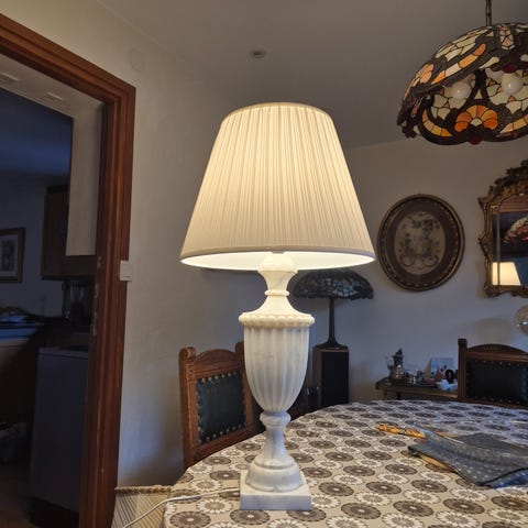 Lampan är handmålad och dekorerad med en vacker målning av en medeltida marockansk marknadsplats och tävling. Lampan har en form av en kalebass eller urna. Valfri Skärm kan med fördel köpas till, kanske flera skärmar som man byter efter säsong och färger runtom. Bara att klicka på skärmen då!