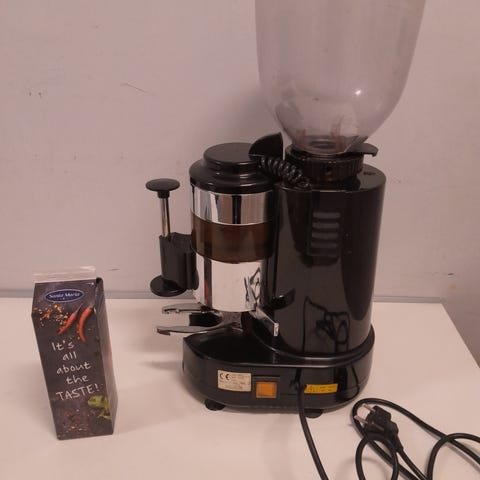 Eureka Mignon kaffekvarn med svart finish. Utrustad med en bönbehållare och justerbar malningsgrad för espresso och andra bryggmetoder. Passar för hemmabruk eller mindre professionella miljöer. För mer info skriv till mig eller ring 0737213422