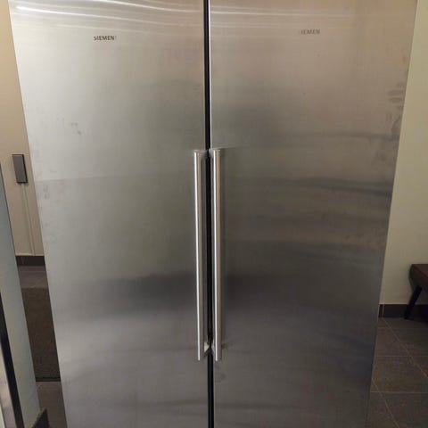 Snyggt matchande kyl och frys från Bosch, båda i vitt och helhöjd (cirka 185 cm).