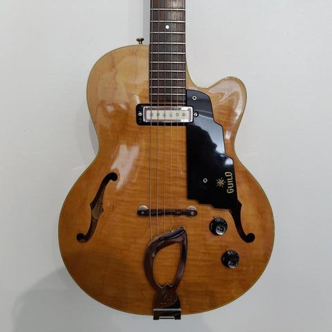 Vacker vintagegitarr med klassisk sunburst, flytande stall och varm akustisk ton. En charmig bit 50/60-talshistoria som förtjänar att spelas mer.