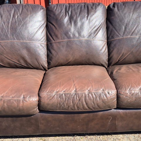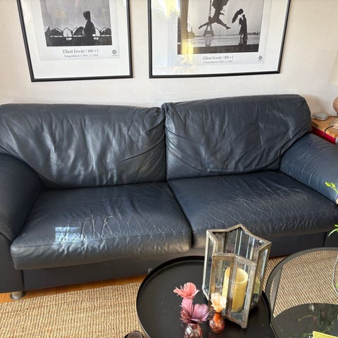 2 sits soffa skinnsoffa skinn läder välvårdad högt ryggstöd finnish sofa