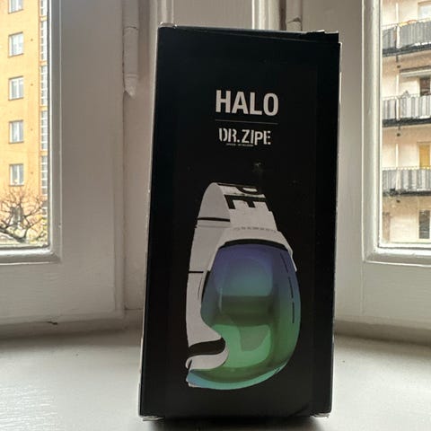 Dr. Zipe Pimp skidglasögon med vit ram och spegelglas. Glasögonen har en justerbar rem med svart, vit och orange mönster. Levereras med förvaringspåse och originalförpackning.