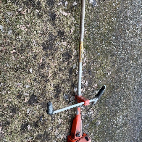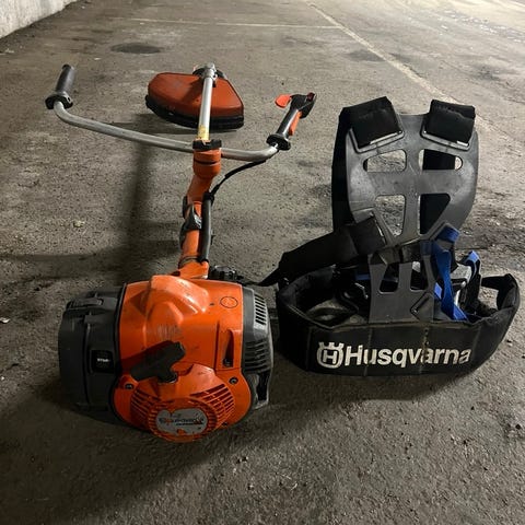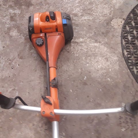 Tyvärr saknas gasspärr, som inte längre säljs från Husqvarna. Påverkar inte funktionen annat än att man kan gasa utan att hålla i handtaget.