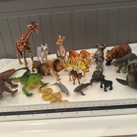 Samling av modellplan och rymdfarkoster i plast och metall