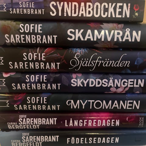Sofie Sarenbrant Bokpaket med flera romaner inklusive titlar som 'Vecka 36', 'Bakom din rygg', 'Tigrar', och 'Skamvrån'. Böckerna är på svenska och passar för läsning inom genren skönlitteratur. 25kr/st