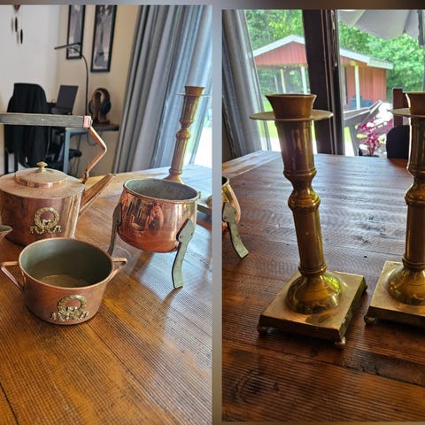 Faten och assietterna är svarta på undersidan.