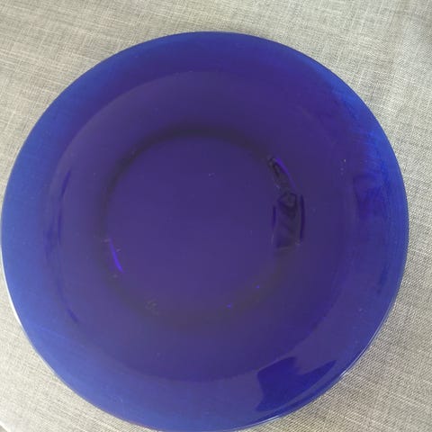5 blå glasassietter