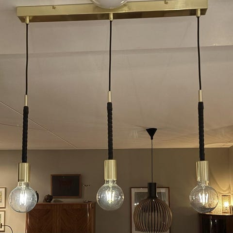 Takpendel med tre ljuspunkter och glaskupor i frostat/klarglas takfäste ingår klar att hängas upp