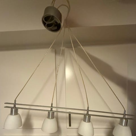 Taklampa med sex justerbara svarta lampskärmar monterad i taket. Lampan är designad för att ge riktat ljus och passar i olika rum och miljöer.
