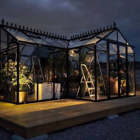Med 13,4 m² odlingsyta, dubbeldörr och stora fönster får du optimala odlingsförhållanden året runt.