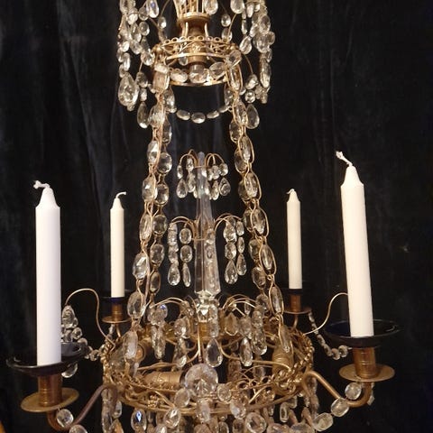 ljuskrona i mässing - 1979 Inkluderar kedja och ljusmanschetter.