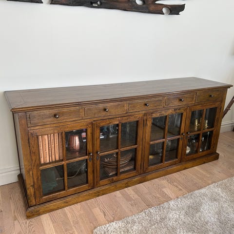 Annorlunda sideboard eller en riktigt cool kaffebänk som den var tänkt till). Köpt av ett företag som säljer handplockade vackra möbler från Indien. Helt nytt. Inköpt till nyinköpt hus och pga. det blev både mått och placering tyvärr fel.