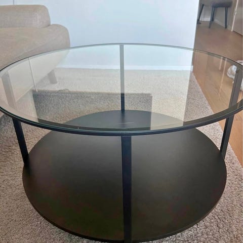 Svart soffbord med glas