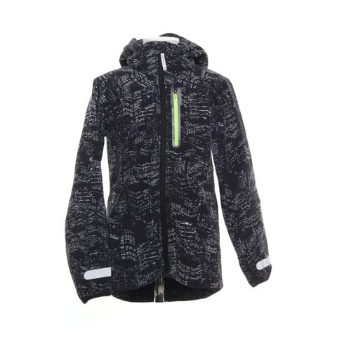 Gul regnjacka med huva från H&M. Jackan har två fickor fram och reflexer på ärmarna. Den stängs med både dragkedja och knappar.