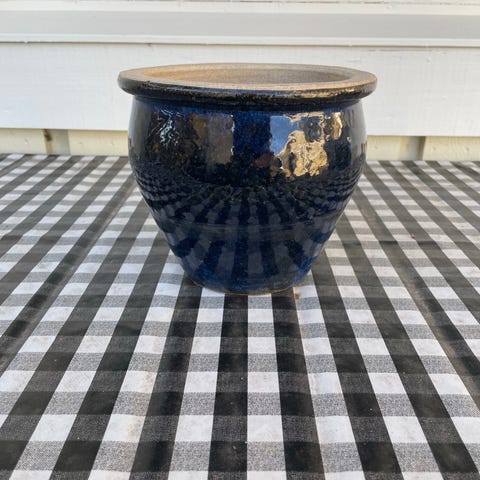 En mycket fin glaserad kruka i stengods med ett hål i botten för inomhusmiljö säljes.