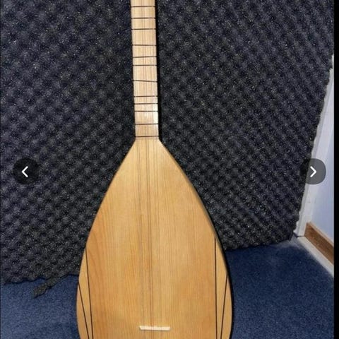 Handmade Oud är ett stränginstrument med en kropp av trä och svart fodral. Instrumentet har en päronformad kropp med flera ljudhål och ett greppbräde utan band. Fodralet är svart med bärremmar för enkel transport.