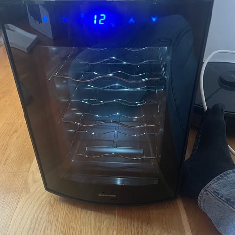 Övriga kylskåp vin kylskåp med svart färg och glasdörr. Kylskåpet är avsett för förvaring av vinflaskor och har flera hyllor för organisering. Passar för både privat och kommersiellt bruk där kylning av drycker krävs.