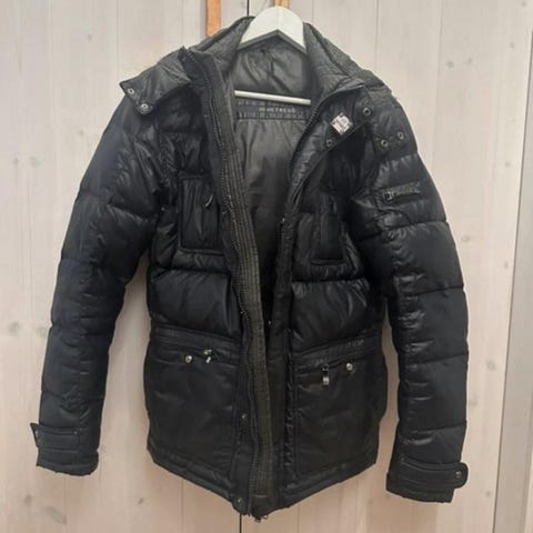 Snygg mörkblå dunjacka från Hetregó med huva och quiltad framsida. Jackan har dragkedja framtill, två sidofickor med dragkedja och en stilren design. Perfekt för kalla dagar och har en modern, clean look som funkar till de flesta outfits. Köpte denna förra vintern och använt den ett fåtal gånger.