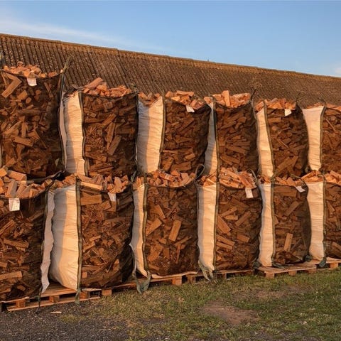 Ved 35 cm klyvd i våras i 1,5 m3 säckar