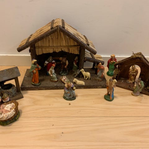 Julkrubba med keramikfiguriner