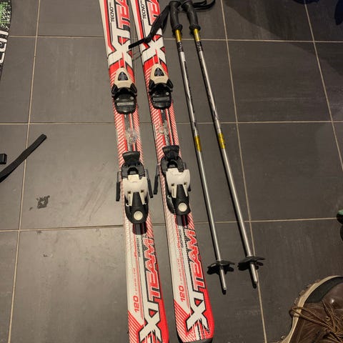 Dynastar skidor 120 cm med bindningar. Skidpjäxor i storlek 37.
