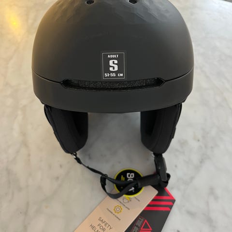 Helt ny och oanvänd HEAD alpin hjälm modell Stivot Race Carbon i storlek M (57-58 cm), svart med gula och vita ränder. Hjälmen har mjuk vaddering inuti och justerbart hakband. Designad för att ge skydd vid skidåkning.