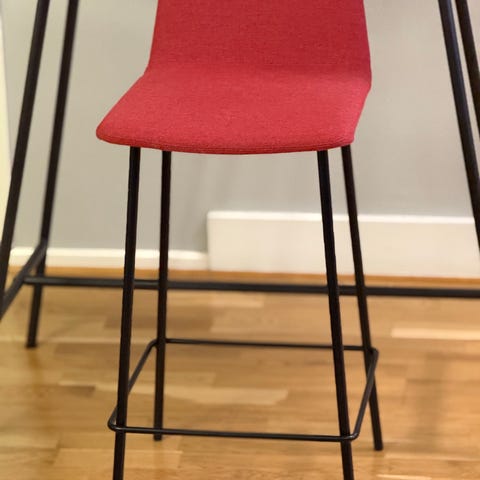 15 st. Barstolar från Danska Erik Jörgensen. Grått tyg med gula knappar.