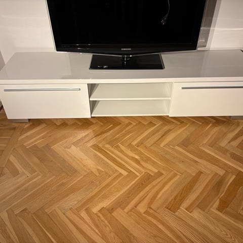 IKEA TV-bänk med frostat glas och förvaring