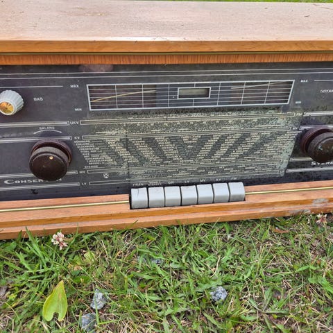 AB Gylling & Co Radiogrammofon Stereopaket i trä med vintage design. Utrustad med skivspelare och radiomottagare, inklusive reglage för volym och inställningar på baksidan. Produkten har en klassisk träfinish och är avsedd för inomhusbruk. Ben finns till den