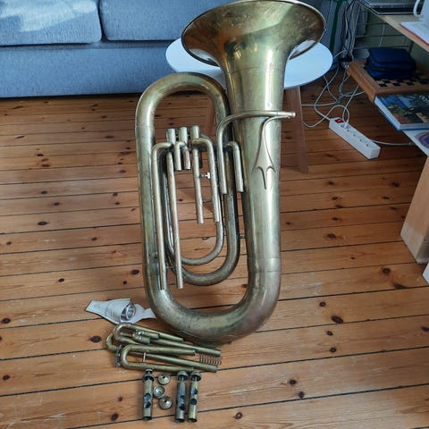 Fint eufonium med bra ton och intonation. Ett äldre kvalitetsinstrument från Yamaha. Silverfärgat. Svårt att ta bra bilder..... Instrumentet är precis genomgånget och väl fungerande. Några små bucklor och lackskav förekommer (se bilder). Säljs inklusive hårt originalfodral samt två munstycken: 1 st Denis Wick + 1 st Yamaha 48. Nypris drygt 25 000 kr. Pris 13 900 eller bud. Kan skickas.
