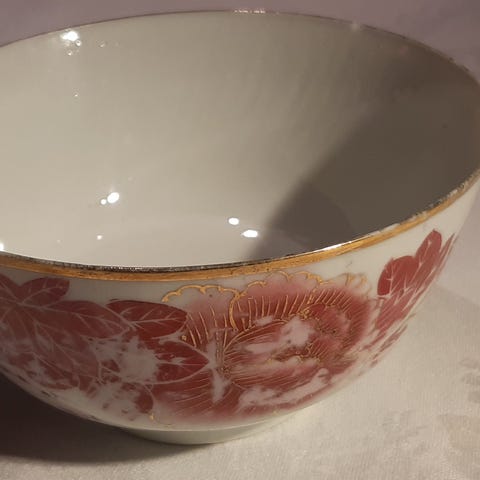 Porslinsskål med blommotiv på 3 fötter. Början av 1900-talet