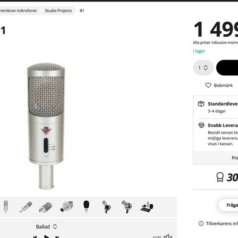 Kondensatormikrofon i bra skick. Tyvärr så glappar infästningen till xlr kontakten lite. Inget som märks om mikrofonen sitter stilla i stativ.