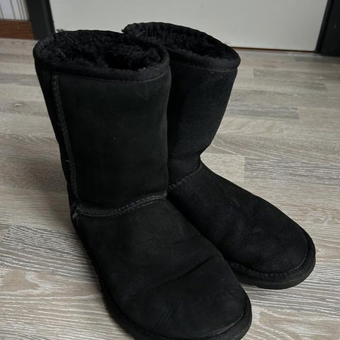 Jätte fina svarta Uggs med rosetter som är i bra använt skick. Hela och rena. Såklart äkta. Är mocka och fodrad med ull.