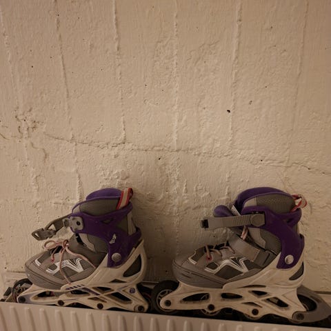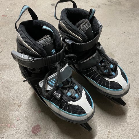 Inlines skridskor med svart och blå färg. Justerbara remmar för bra passform. Justerbar storlek.
