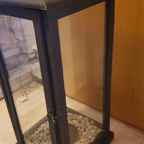 Stor ljuslykta i trä, taket är i plåt
